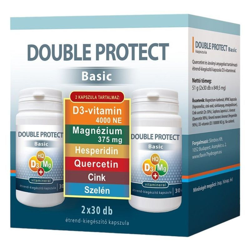 Hatóanyagok és összetevők: Flavin7 Double Protect Basic. Minden kapszula tartalmazza az alábbi hatóanyagokat: Magnézium-karbonát (ebből magnézium: 187,5mg), Cink-acetát (ebből cink: 10mg), Sophora Japonica L. kivonat (ebből Quercetin 25mg)